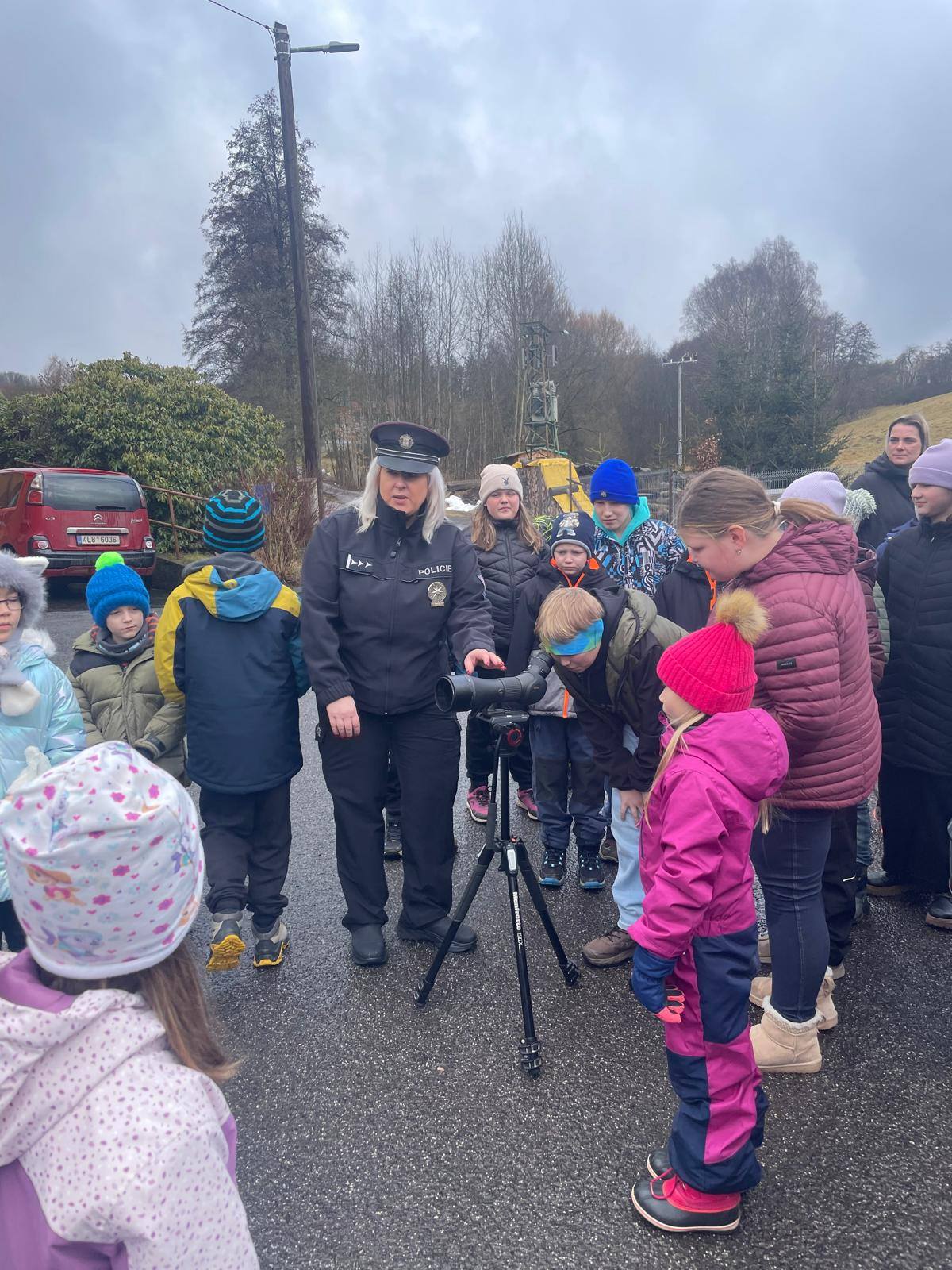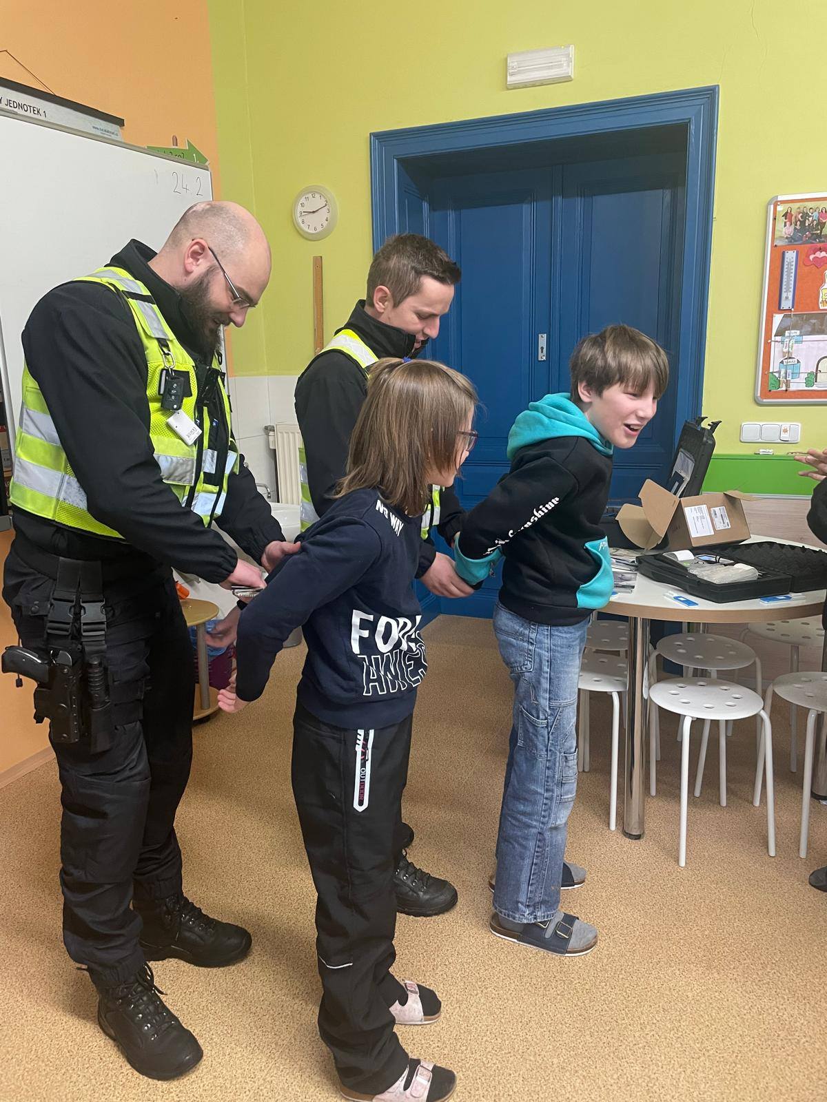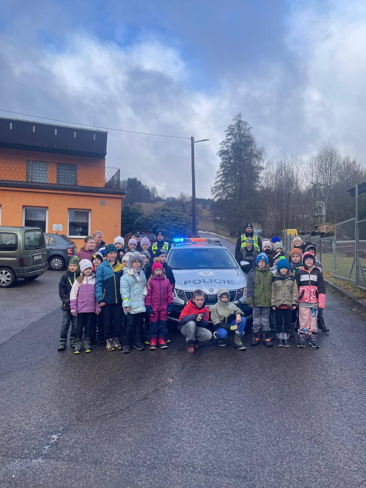 Policie ČR zavítala k nám do školy. Už víme jak se správně chovat na silnici i na internetu. Za odměnu jsme se podívali na policejní vybavení i do policejního auta, zkusili jsme si pouta i test na alkohol!. Za všechno mnohokrát děkujeme.